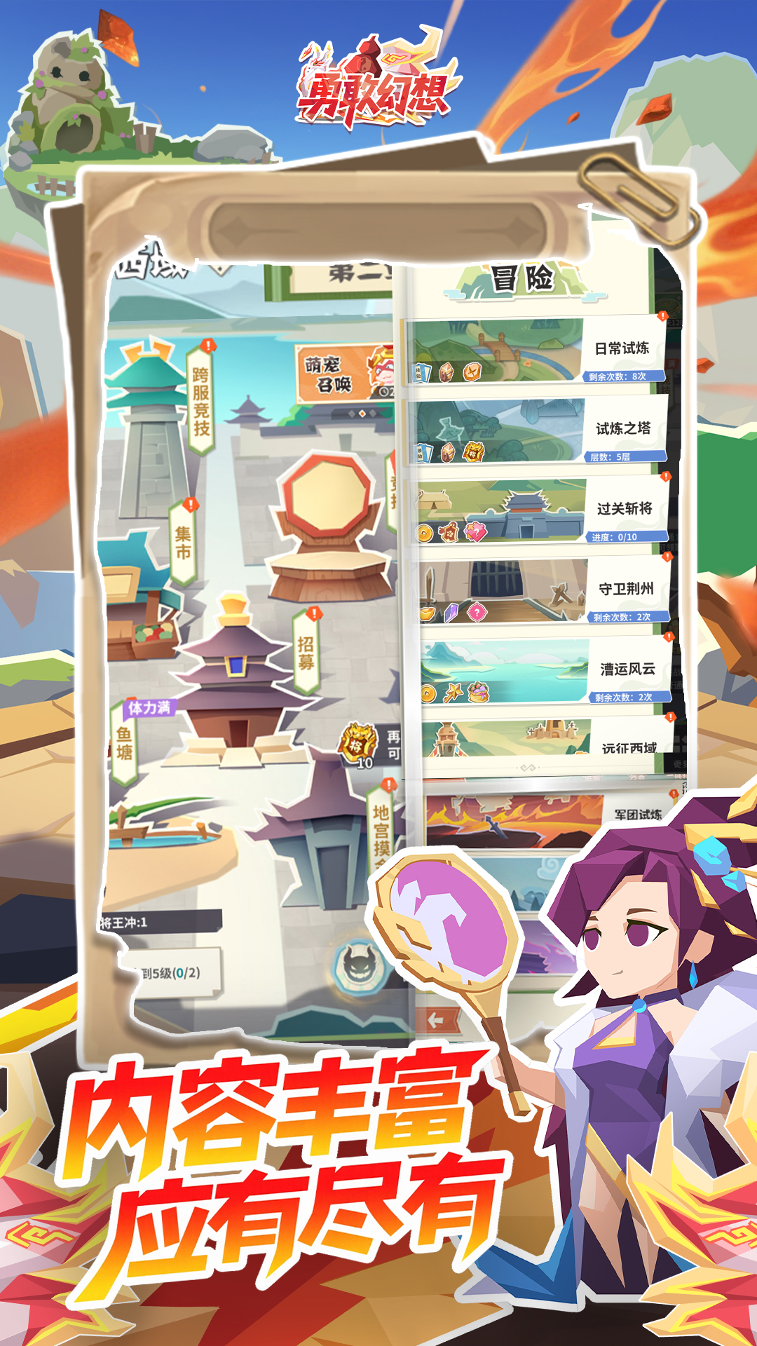 ,【惊艳剪纸三国,也能享受轻松摸鱼的惬意——这或许正是你一直在寻找的那个,解锁一个你从未见过的治愈系三国!原来三国征战,抱团闯三国】跨服竞技点燃战意,拦截对手货船体验“暴富”心跳深入地宫摸金探险,你能体验策略对战的快感,躺着变强者】无需爆肝 !